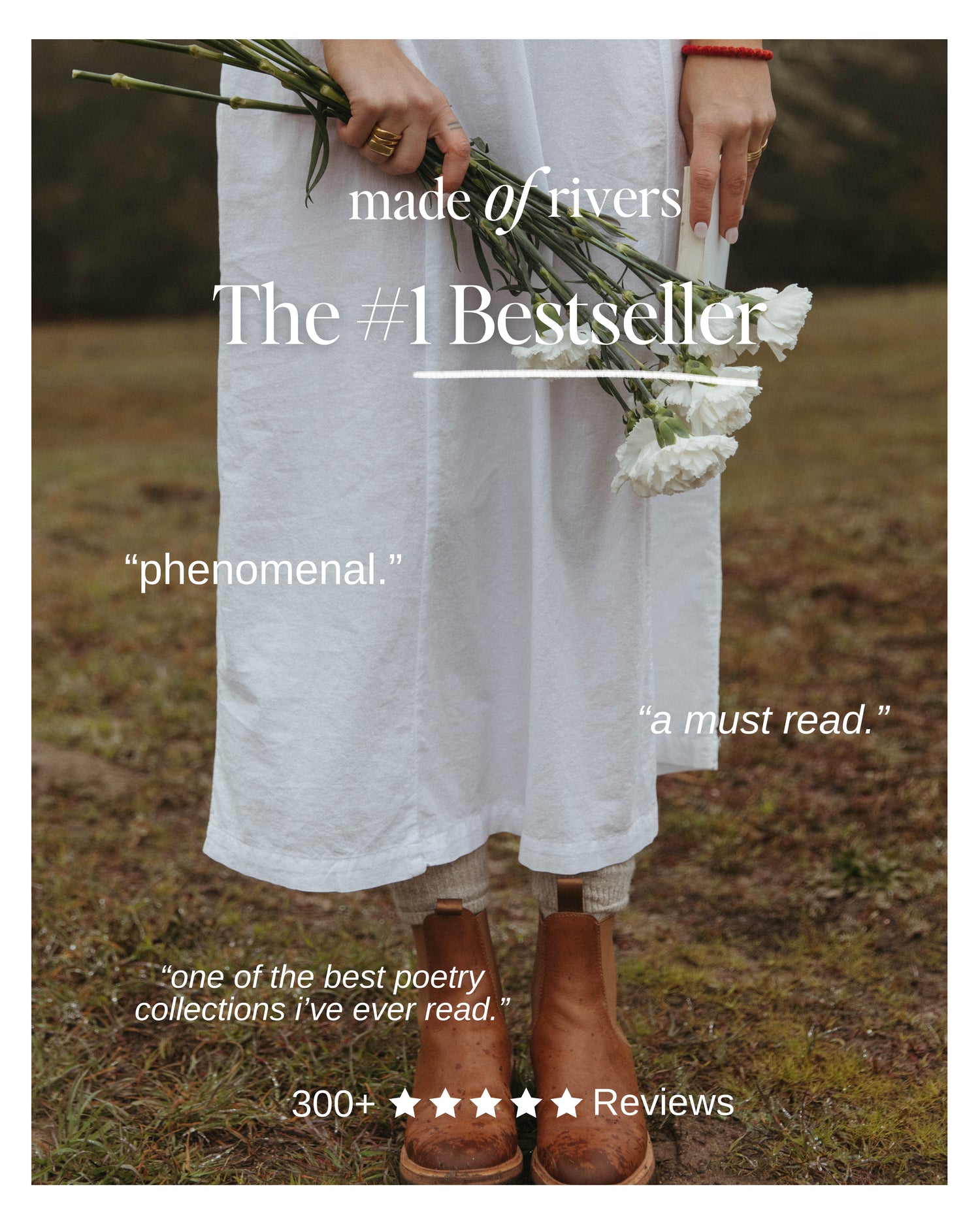 Made of Rivers was first released in June 2023 and quickly climbed to the top of the charts, debuting as the #1 Bestseller in multiple categories. The stunning collection, which will be re-released with Hay House this November 12th 2024, unearths the depths of the human heart at every turn. Revised and expanded with 30 new poems, this raw and poignant collection takes readers on a journey through the winding currents of self-discovery, transformation, and healing, culminating in a glistening sea of love and redemption. Raw, honest, and full of magic, Made of Rivers will wash anew all those who come to it, uncovering hidden corners of the self longing to be discovered.